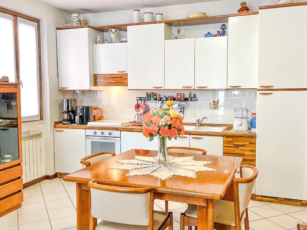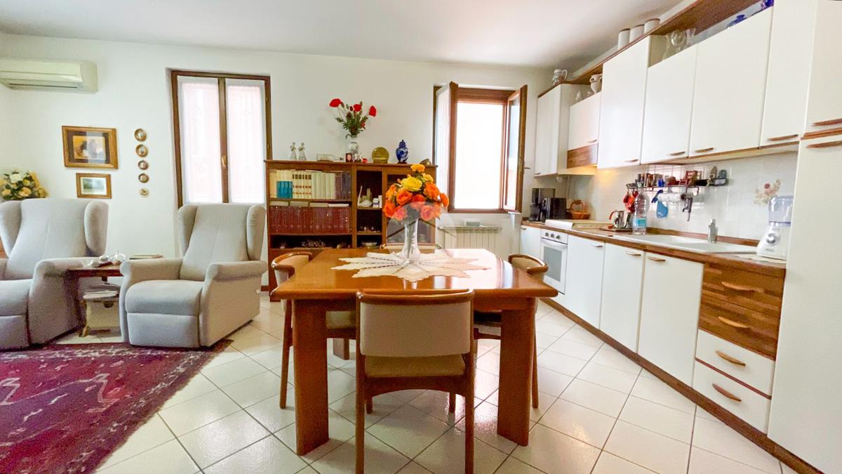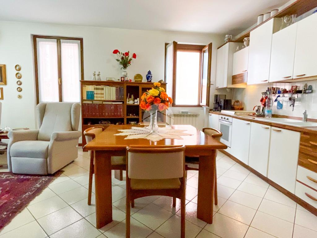 Internamente l’abitazione si apre su una zona giorno open space, dove soggiorno e cucina convivono in un ambiente accogliente e molto luminoso, grazie alla presenza di ampie finestre e della porta finestra che conduce al terrazzo di circa 7 mq, ideale per godersi uno spazio esterno nel cuore del paese. La cucina è in ottimo stato e viene lasciata compresa nel prezzo di vendita.